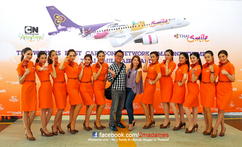 2 เม.ย. 58 – 2Madames.com ได้รับเชิญไปร่วมงานเปิดตัวเครื่องบินธีมการ์ตูนเน็ทเวิร์คอเมโซนลำแรกของโลกของสายการบินไทยสมายล์ โดยการร่วมมือกันระหว่างสวนน้ำการ์ตูนเน็ทเวิร์คอเมโซน และสายการบินไทยสมายล์ ทั้งนี้เครื่องบินแอร์บัส A320 ของสายการบินไทยสมายล์ เป็นเครื่องบินลำแรกที่ตกแต่งด้วยภาพตัวการ์ตูนดังจากแอดเวนเจอร์ ไทม์ ทั้งภายในและภายนอกเครื่อง ซึ่งจะสร้างสีสันเติมความสนุกให้แก่ผู้โดยสารอย่างเต็มที่ หน้าตาเครื่องบินเป็นอย่างไร จะมีอะไรน่าสนใจบ้าง น่ารักแค่ไหน ไปชมภาพรีวิวกันครับ