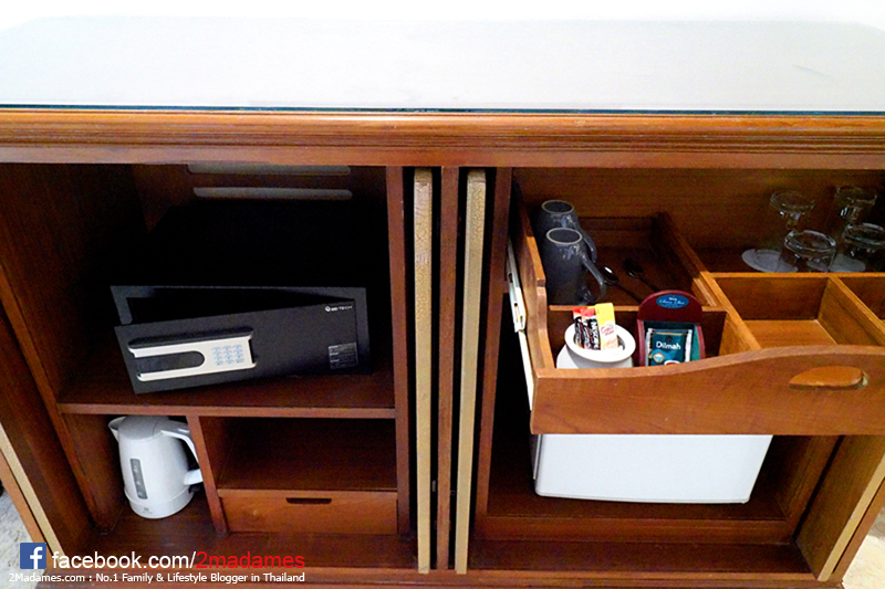 ตู้เซฟ กาต้มน้ำร้อน ชากาแฟ ตู้เย็น มีครบ