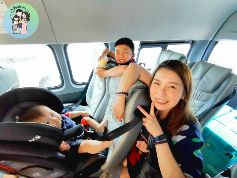 ใช้เวลาบินประมาณชั่วโมงกว่าๆ ก็ถึงสนามบินภูเก็ต จองรถรับส่งจากสนามบินของโรงแรมถาวร บีชเอาไว้ เป็นรถตู้หลังคาสู๊งสูง รถเที่ยวนี้ไม่มีแขกคนอื่นนอกจากเรา เลยนั่งจับจองกันสบายๆ เค้ามี Car seat ให้เด็กน้อยด้วยนะ ดี๊ดี
