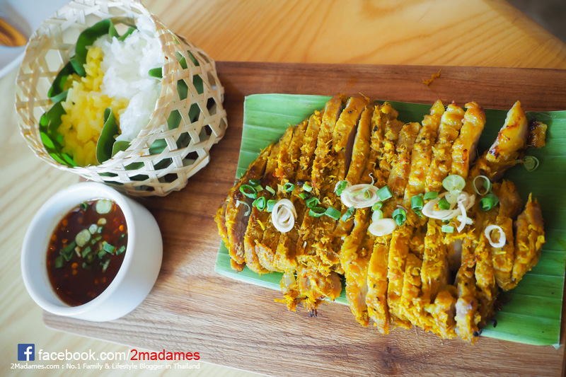 จานถัดไปเป็นหมูย่างสมุนไพรหรือย่างขมิ้นอะไรสักอย่างเนี่ยแหละ เป็นจานเดียวที่ไม่ค่อยปลื้มสำหรับครอบครัวเรานะ แต่ถ้าใครมาแนวเฮลท์ตี้อาจชอบก็ได้ แหะๆ