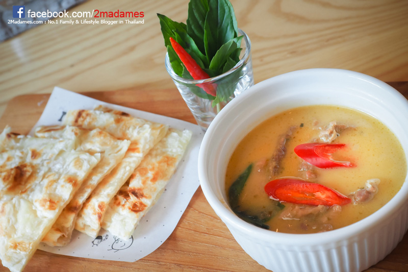 โรตีแกงเขียวหวานหมู น้ำแกงออกดูใสๆ แต่รสชาติอร่อยลงตัว