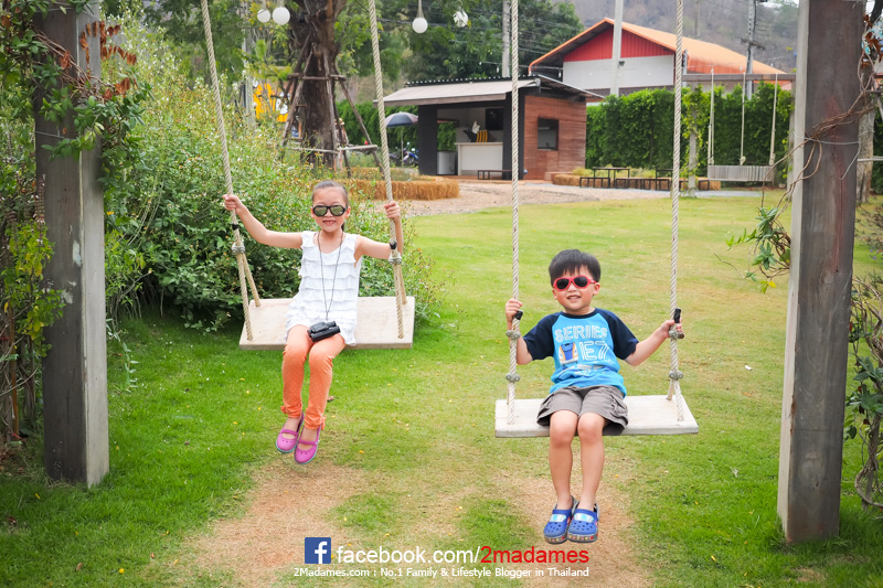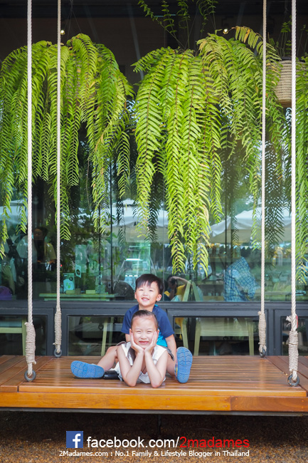 บริเวณก่อนทางเข้าในตัวร้าน มีชิงช้าขนาดใหญ่ให้นั่งรอกันเพลินเลย เด็กๆมารออาหารกันตรงนี้ล่ะ