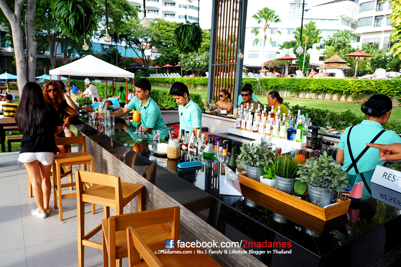 ด้านหลังมีบาร์น้ำอยู่ พนักงานดูกระฉับกระเฉงกันน่าดู