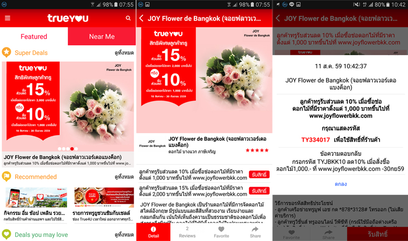 ร้าน Joy Flower de Bangkok นี้ไปเจอมาจากแอพ TrueYou ครับ เปิดมาเจอพอดี เห็นมีส่วนลดอยู่ เลยลองสั่งดู 1,200 บาท ลด 10% เหลือ 1,080 บาทจ้า โปรนี้มีถึง 30 ก.ย. 59 นะจ๊ะ ใครสนใจลองสั่งดูนะครับ