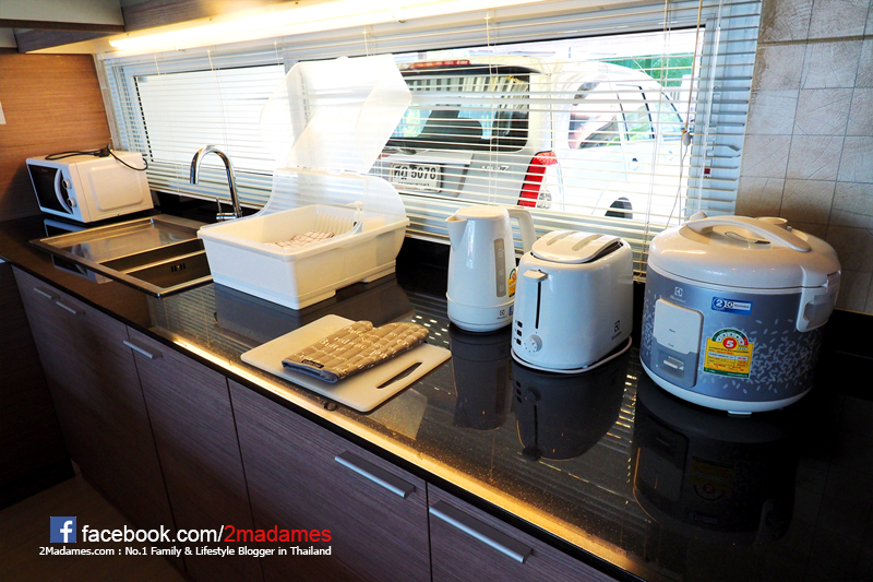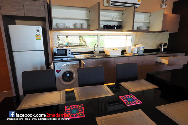นอกจากความดีงามเรื่องห้องนั่งเล่นกว้างๆแล้ว ในบ้านยังมีโต๊ะทานข้าว เครื่องซักผ้า ชุดครัวต่างๆทั้ง เตาไฟฟ้า, เตาไมโครเวฟ, หม้อหุงข้าว, กาต้มน้ำ, เครื่องปิ้งขนมปัง พร้อมทั้งจานชาม หม้อ กระทะ ครบชุด เรียกว่าเหมาะแก่การมาปาร์ตี้สุดๆ