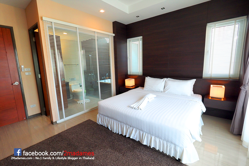 เข้ามาชมในห้องพักกันบ้างนะ ห้องพักของเราเป็นแบบ Pool Villa ขนาด 4 ห้องนอน 4 ห้องน้ำ มีห้องนั่งเล่นริมสระว่ายน้ำส่วนตัว และมีครัวพร้อมอุปกรณ์ครบชุด ไม่ติดทะเล แต่เงียบสงบดี