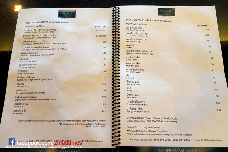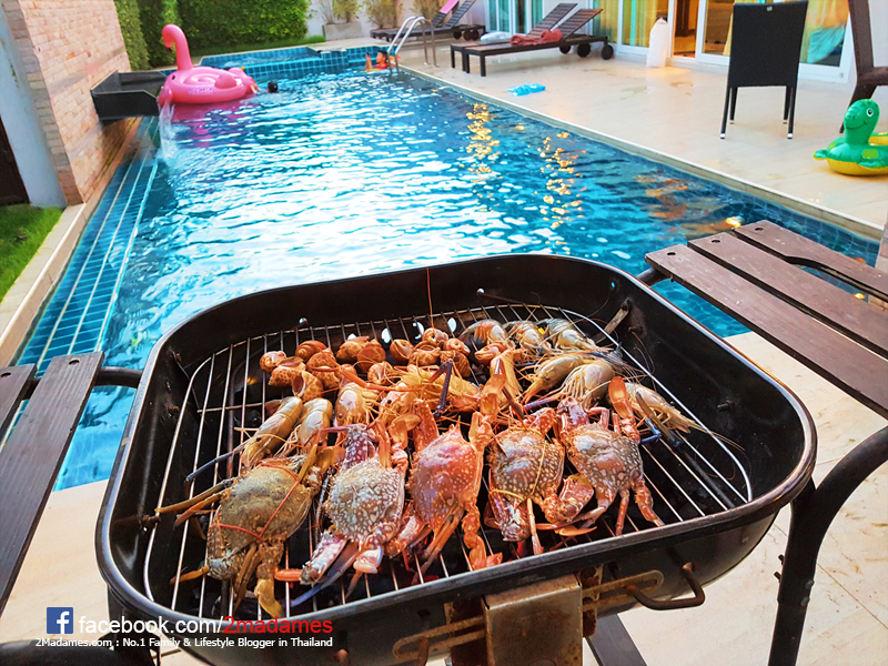 สำหรับใครอยากจะฟินให้ถึงที่สุดแนะนำให้หาซื้ออาหารทะเลมาปิ้งบาร์บีคิวริมสระว่ายน้ำ หรือถ้าจะเอาสะดวกก็สั่งกับทาง The Ville Jomtien Pool Villa ได้เลย ราคาก็ตามเมนูเลยจ้า