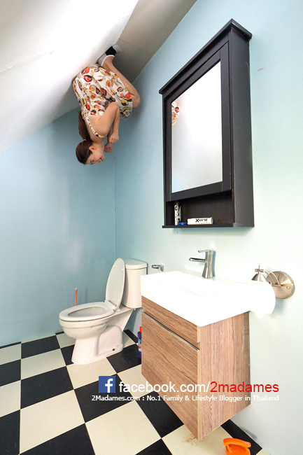 ด้านในไม่ใหญ่มากนัก แต่มีมุมถ่ายภาพเสมือนว่าเราอยู่ในบ้านแล้วห้อยกลับหัวจากเพดาน คือสนุกดีนะ