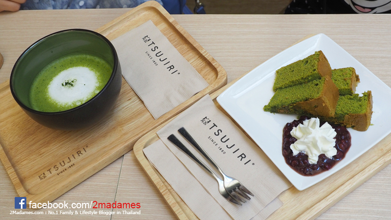 เริ่มด้วยชาเขียวแบบออริจินอลกันก่อนเลย O-Matcha Cappuccino ราคา 155 บาท ชาวญี่ปุ่นดั้งเดิมเค้าชอบทานแบบนี้นะ เพราะมันดีต่อสุขภาพมากกว่าแบบที่ทำเป็นของหวาน ก็แน่สิเนอะ เพราะชาเขียวแบบนี้จะไม่ผสมน้ำตาลเลย ส่วนรสชาติ เท่าที่เคยทานที่ญี่ปุ่นจะขมกว่านี้หลายเท่าตัวมากๆ ถึงขนาดที่ว่าต้องทานกับขนมหวานคล้ายๆขนมโก๋คู่กันถึงจะกลมกล่อมพอดี แต่ของที่ TSUJIRI รสชาติจะกลางๆ ทานเพียวๆได้ไม่ขมจัด น่าจะทำรสชาติให้เหมาะกับคนไทย ส่วนขนม O-Matcha Chiffon Cake ราคา 115 บาท ก็จะเน้นหวานน้อย ดีต่อสุขภาพมากๆ