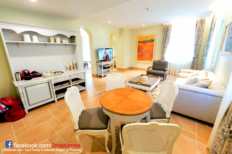 ห้องสวีทของ U Khao Yai จะอยู่ที่ชั้นหนึ่งของโรงแรมครับ ห้องจะกว้างกว่าห้องดีลักซ์เยอะมาก มีห้องนั่งเล่น โต๊ะทานอาหาร โซฟาอันใหญ่มาก