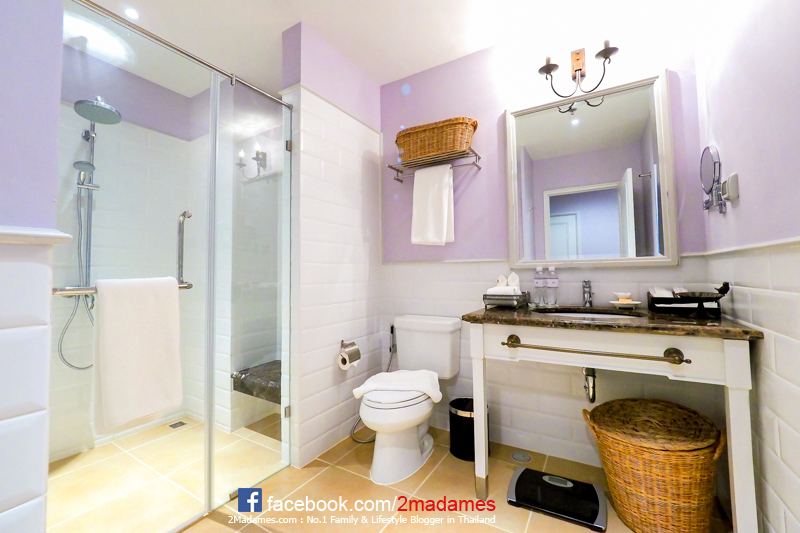 มาชมห้องน้ำกันนะ ห้องพักแบบดีลักซ์จะไม่มีอ่างอาบน้ำให้นะ