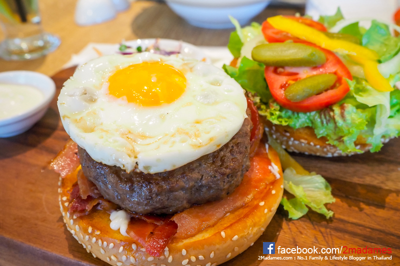 ลองทานเบอร์เกอร์ดูบ้าง Ur Ultimate Burger ราคา 350++ ที่ใช้เนื้อวากิวออสเตรเลียน ขนาด 150 กรัม เสิร์ฟพร้อมเบคอน ไข่ดาว หอมหัวใหญ่ย่าง เชดด้าชีส คับคุณภาพมากๆ แถมเสิร์ฟพร้อมเฟรนซ์ฟรายด้วย