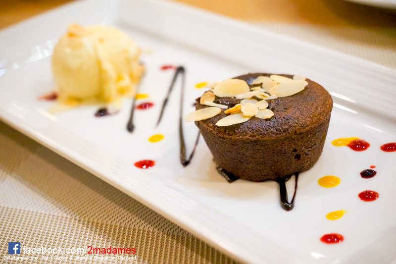 ของหวานสั่ง Dark Chocolate Lava Cake ของโปรดของพวกเรามาลองชิม รสเข้มใช้ได้เลยนะ แต่อบนานไปนิด ช็อคโกแลตเลยไม่ค่อยไหลเป็นลาวา ทานกับไอศกรีมวานิลลาเย็นๆ ชื่นใจจ้า
