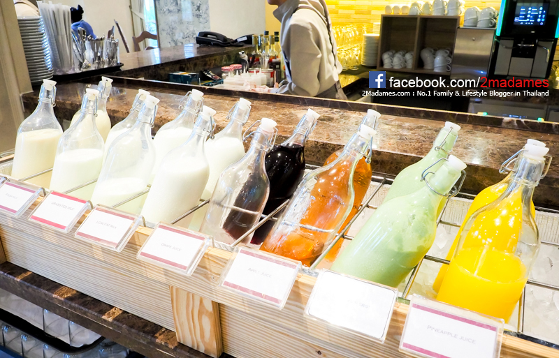 มีนมให้เลือกดื่มถึงดีแบบตามแต่ใครจะชอบ น้ำผลไม้ก็มี ส่วนน้ำเขียวๆเป็นผักปั่นกับนมถั่งเหลือง ดูดีต่อสุขภาพมากกกก