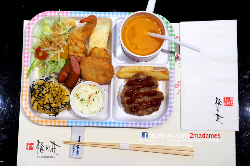 เมนูจานนี้สำหรับเด็กครับ มีเบอร์เกอร์ ไส้กรอก ของทอดต่างๆ ข้าวปั้น ฯลฯ