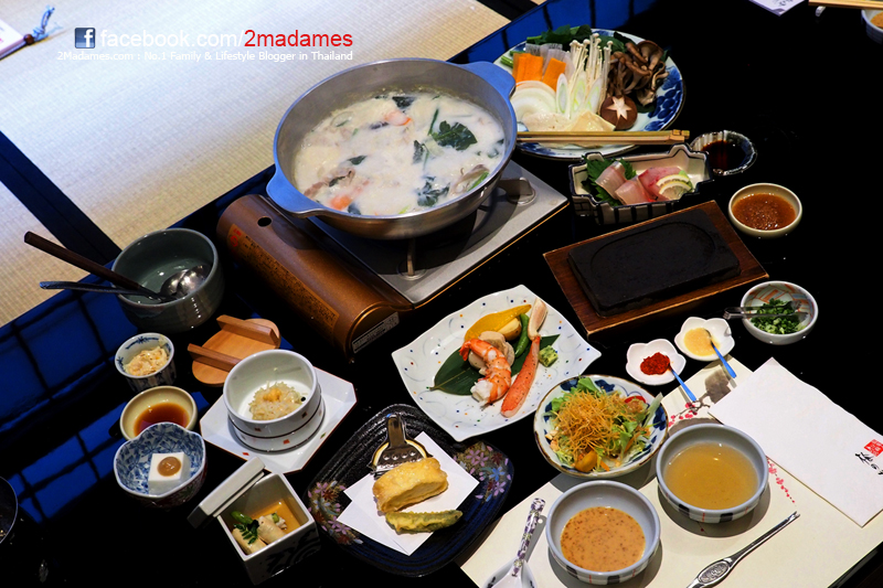 ไฮไลท์ของชุดนี้คือ ชาบูหมูในน้ำเต้าหู้ครับ หมูสไลด์ชั้นดี เสิร์ฟพร้อมซุปน้ำเต้าหู้ ผัก และเครื่องเคียงทำสุกี้ เปลี่ยนแปลงจากชาบูธรรมดาให้เป็นชาบูเลิศรสที่มีกลิ่นอายความเป็นญี่ปุ่น และเป็นอีกหนึ่งเมนูเพื่อคนรักสุขภาพ