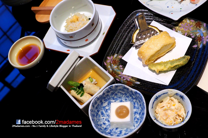 นอกจากเมนูไคเซกิ Kaiseki แล้ว หากใครอยากทานอาหารเป็นเซททั่วๆไปเหมือนร้านอื่นก็มีนะครับ แต่ที่พิเศษไม่เหมือนร้านอื่นคือจะมีเครื่องเคียงซิกเนเจอร์ของร้าน นั่นก็คือเต้าหู้มาให้ด้วย