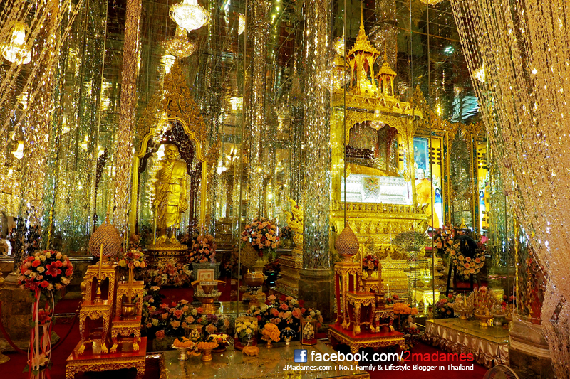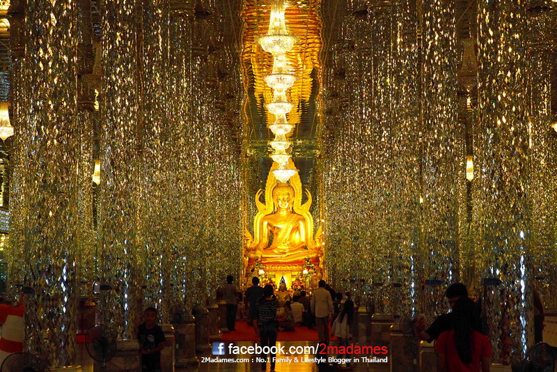 ที่นี่สวยงามมากครับ ภายในประดับด้วยโมเสกสีขาวและกระจกวิบวับไปทั้งหลัง ด้านหนึ่งประดิษฐานพระพุทธชินราชจำลองเป็นพระประธานและพระอรหันต์อีก 7 องค์