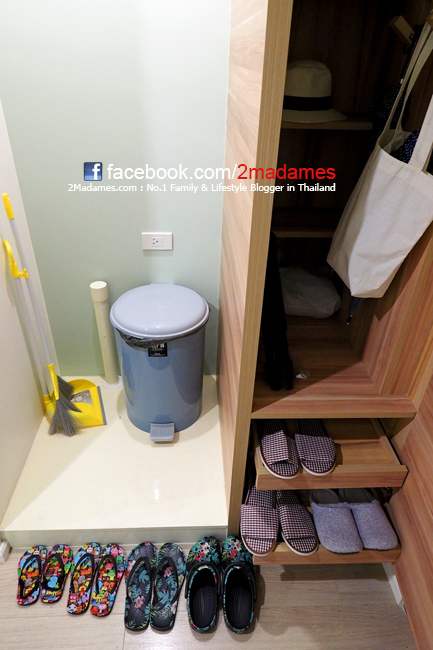 เข้ามาถึงห้องพักก็จะมีตู้เก็บของด้านหน้าให้ใส่รองเท้าและของใช้ต่างๆ
