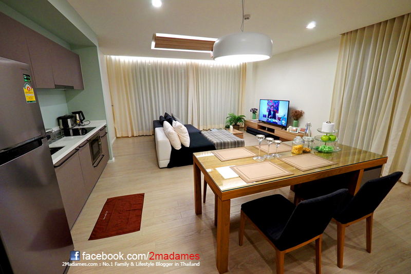 ห้องพักเป็นแบบ 2 ห้องนอน 2 ห้องน้ำ พื้นที่ใช้สอยประมาณ 100 ตร.ม. หากเทียบกับห้องสี่เหลี่ยมเล็กๆจำเจในโรงแรมทั่วไปที่พักได้แค่ 2 คนแล้ว ที่พักคืนนี้ของเรากลายเหมือนเป็นบ้านสุดหรูของครอบครัวไปแบบไม่ยากเย็นเลยทีเดียว