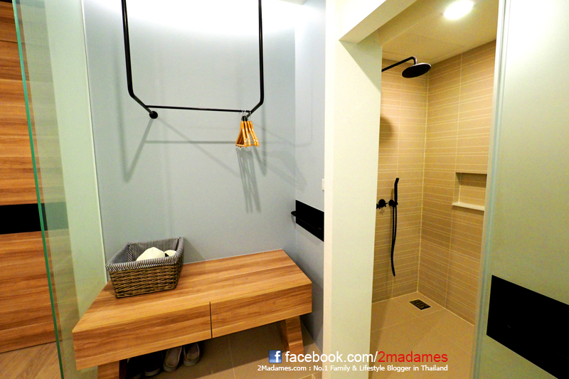 ห้องน้ำมีพื้นที่กว้างๆให้แขวนเสื้อผ้าต่างๆคล้ายๆกับ Walk-in Closet เลย