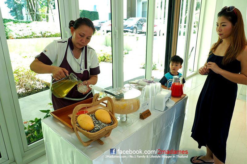 ตอนที่ผมเข้าไปพัก โครงการยังขายไม่หมด ทางสำนักงานขายเลยมีบริการเสิร์ฟขนมและเครื่องดื่มฟรีให้กับแขกที่มาเยี่ยมชมด้วย