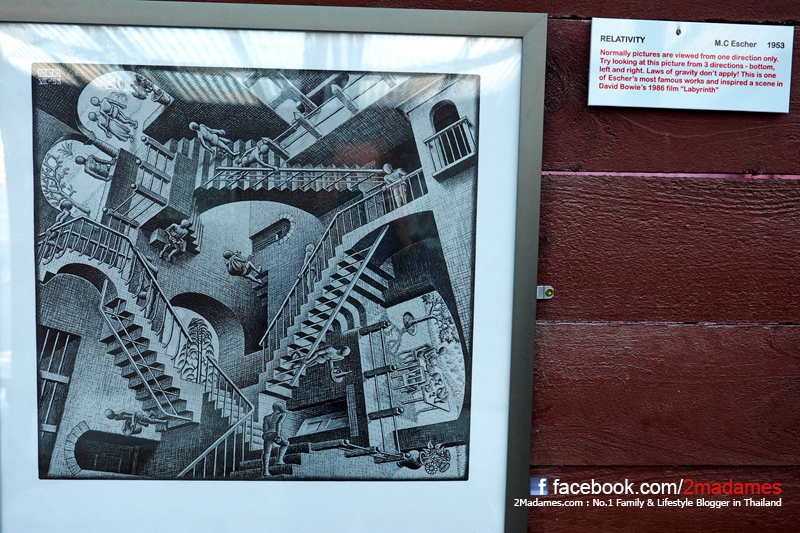 เข้าไปเล่นกันเลยดีกว่า ด้านในมีหลายส่วนที่สนุกสนานครับ ส่วนจัดแสดงภาพสามมิติ และบ้านเอียง โดยบ้านหลังนี้พอเราเข้าไปแล้ว ทุกอย่างจะเอียงไปหมด ข้าวของสามารถไหลจากด้านล่างขึ้นสู่เพดานได้