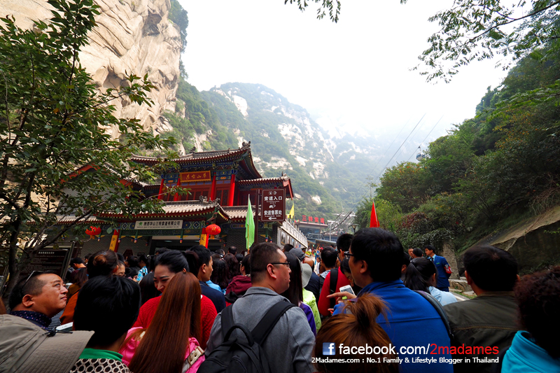 จากจุดนี้พวกเรารอขึ้นเคเบิ้ลคาร์ไปบนเขา แต่รอไปแล้วสองชั่วโมงก็ยังไม่สามารถขึ้นไปได้ คิวยาวมาก ด้วยเรามีจองรถไฟต่อไปยังเมือง Luoyang ไว้ ปรึกษากันว่าถ้าเราขึ้นไปแล้วต้องต่อคิวลงมาอีก จะตกรถไฟแน่ๆ สุดท้าย ยืนต่อคิวไป 2 ชั่วโมงกว่าๆ แต่ไปไม่ถึงเขาหัวซานนะ ยอมแพ้จริงๆ