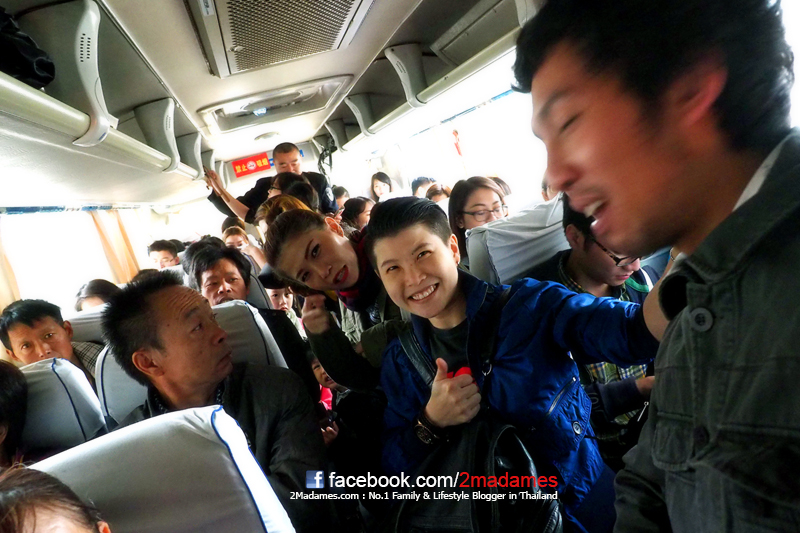 พอขึ้นมาบนรถ ปรากฏว่ารถเต็มหมดแล้ว เราเป็นตั๋วยืนที่จ่าย 10 หยวน ซึ่งแพงกว่ารถบัสสาย 306 เสียอีก แถมทางก็ไกลมาก ปกติก็นั่งกันเป็นชั่วโมง ช่วงวันชาติจีนรถยิ่งติด กลายเป็น 2 ชั่วโมงเลย