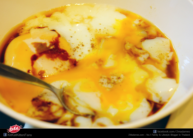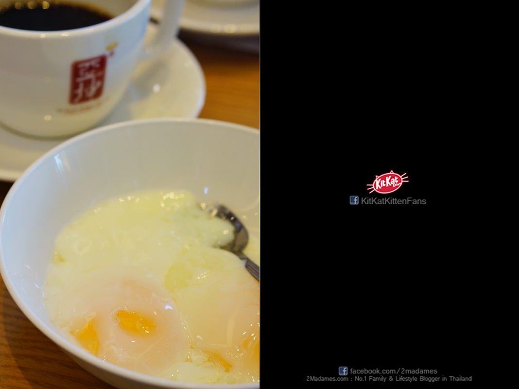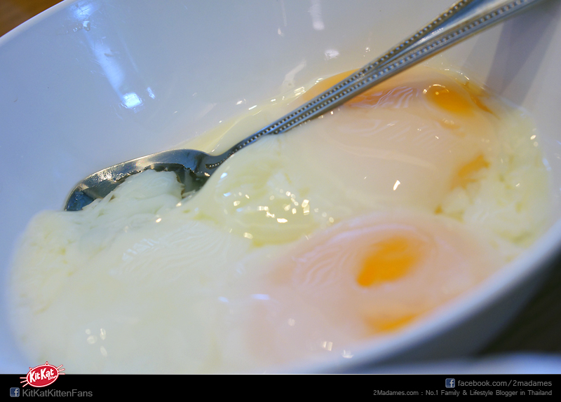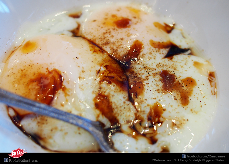 ไข่ลวกของที่นี่เสิร์ฟมากำลังสวยเลยค่ะ ตัวของไข่ขาวหุ้มไข่แดงไว้โดนรอบน่าทานมาก สำหรับเหมียวๆ ไข่ลวกของที่นี่กำลังดีค่ะไม่คาวเลย