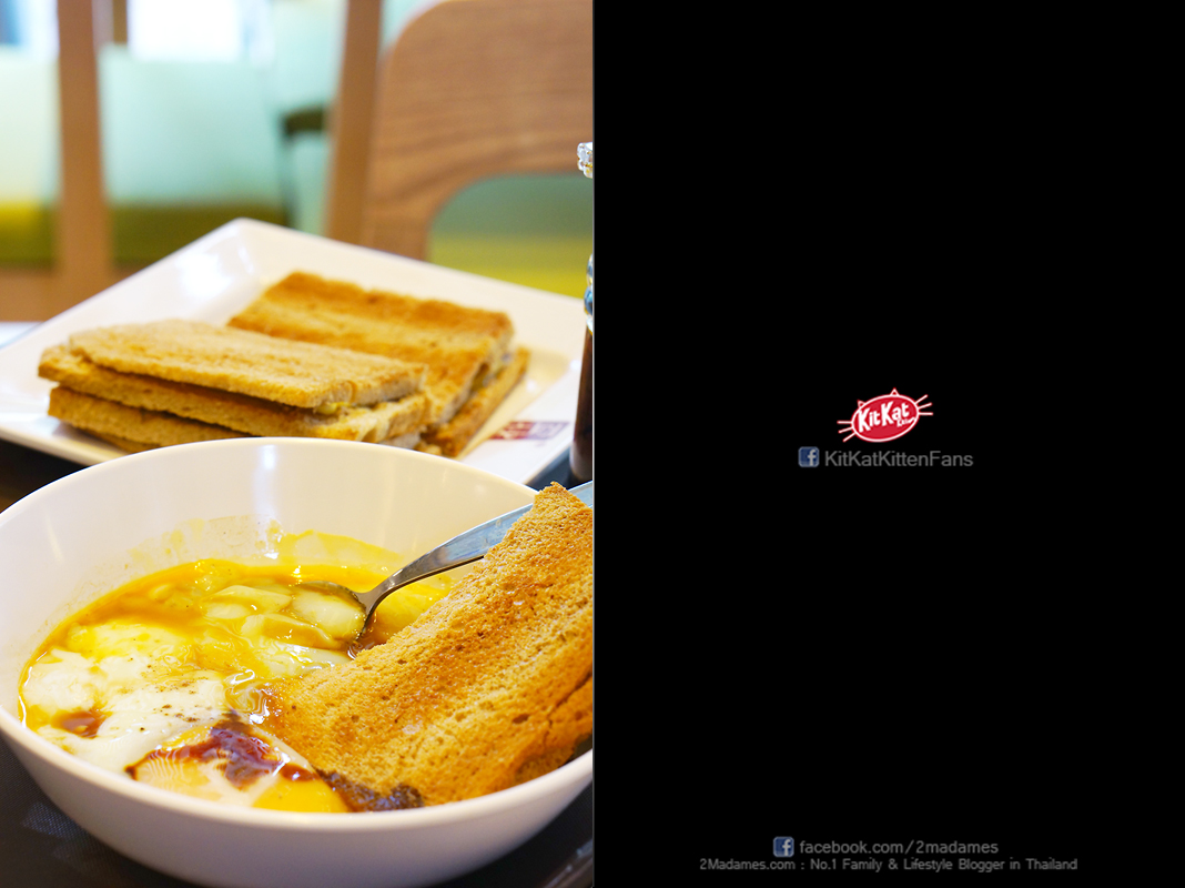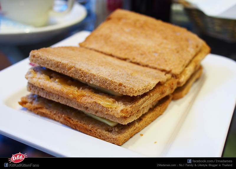 สังเกตุว่าขนมปังสังขยาหรือ Kaya Toast ของเค้าจะมีเนยก้อนหั่นบางๆอยู่ตรงกลางด้วย