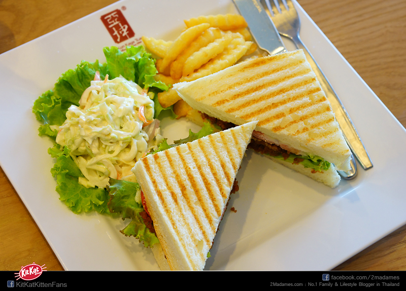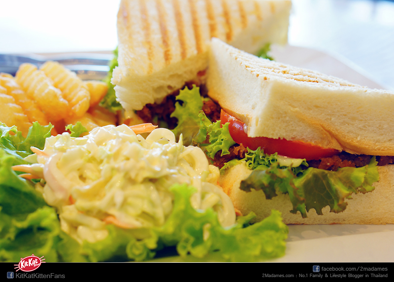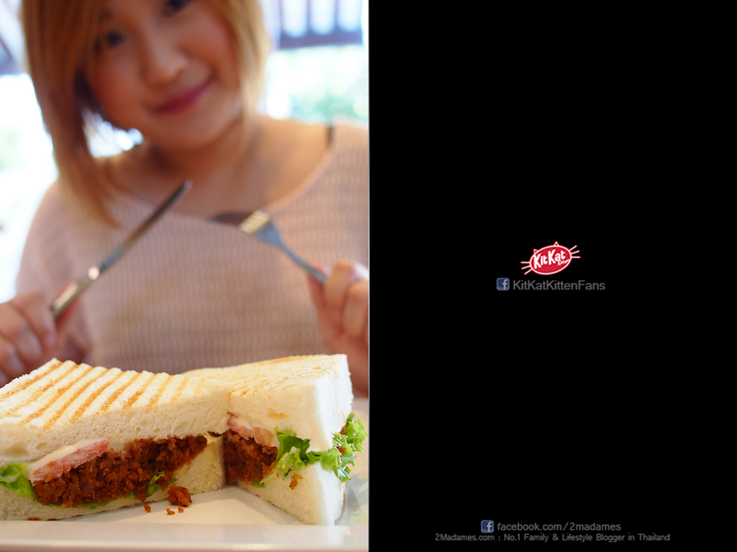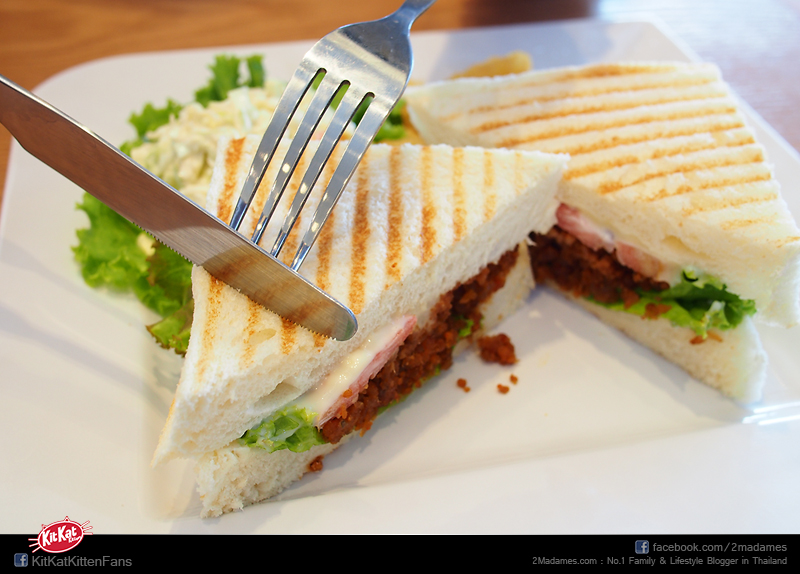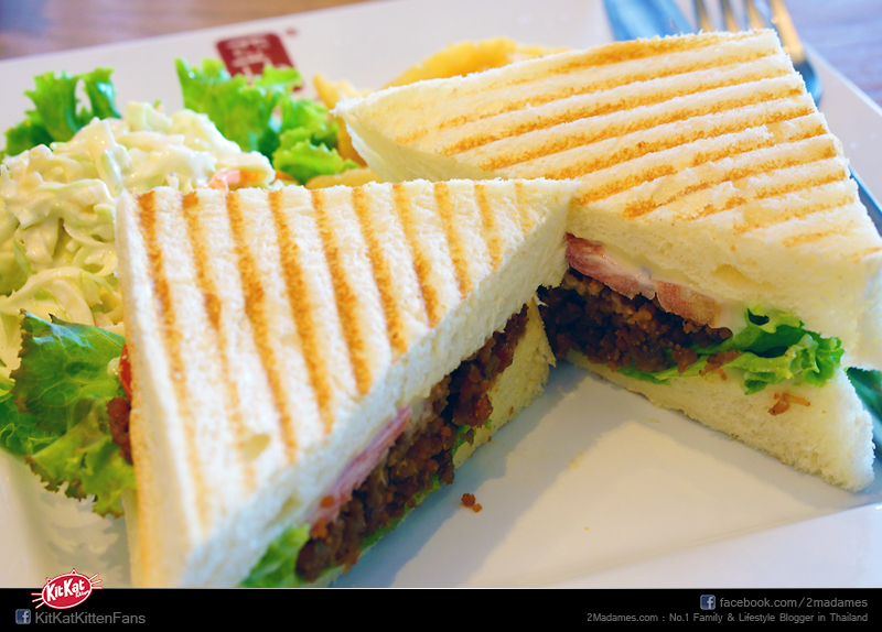 Sandwiches มีให้เลือกอยู่หลายแบบค่ะทั้งแบบธรรมดาเช่น แซนวิสไข่ แซนวิสแฮมชีส หรือแบบฟิวชั่น เช่น แซนวิสต้มยำไก่, แกงกะหรี่ไก่, Spicy Sardine และ สุดท้ายเมนูที่เหมียวๆเลือก Spicy Shrimp Sandwiches ราคา 150 บาทค่ะ