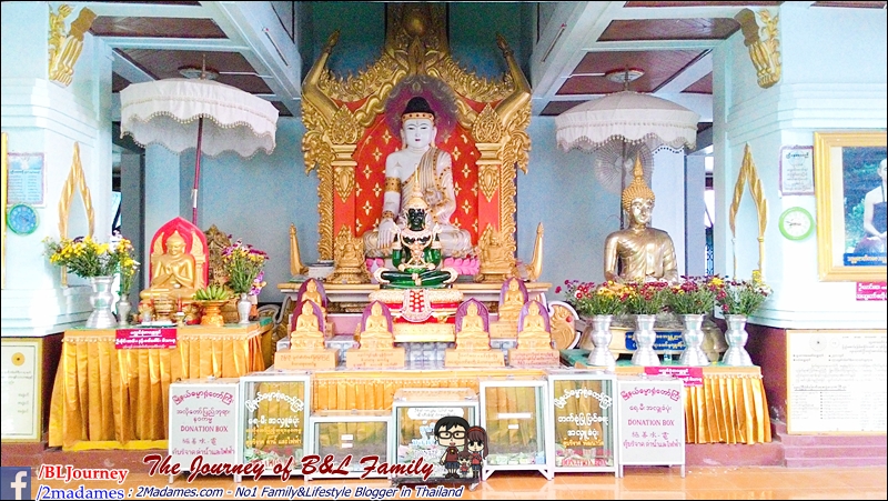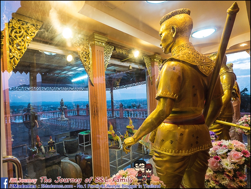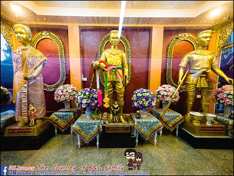 บริเวณด้านในของวัด ด้านในสุดจะมีทางขึ้นชั้นสองครับ อย่างที่ผมบอกไปว่าทางพม่ามีพระเจ้าบุเรงนองหันมา ทางไทยก็มี สมเด็จพระนเรศวรมหาราช พระเอกาทศรส พระสุพรรณกัลยา หันพระพักตร์ไปยังพม่าครับ