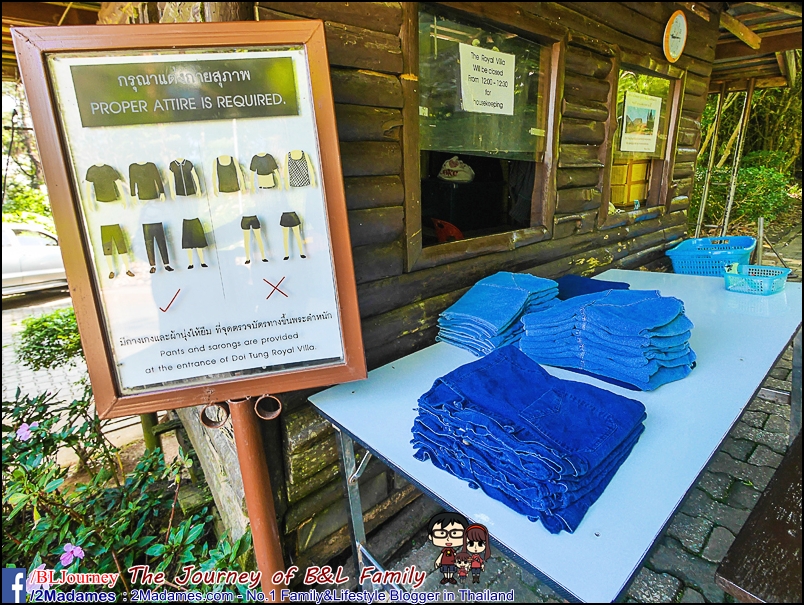 จุดตรวจก่อนทางขึ้นพระตำหนักดอยตุงจะมีผ้านุ่งไว้ให้บริการครับ ก่อนเข้าเขตพระราชฐานต้องแต่งกายสุภาพครับ