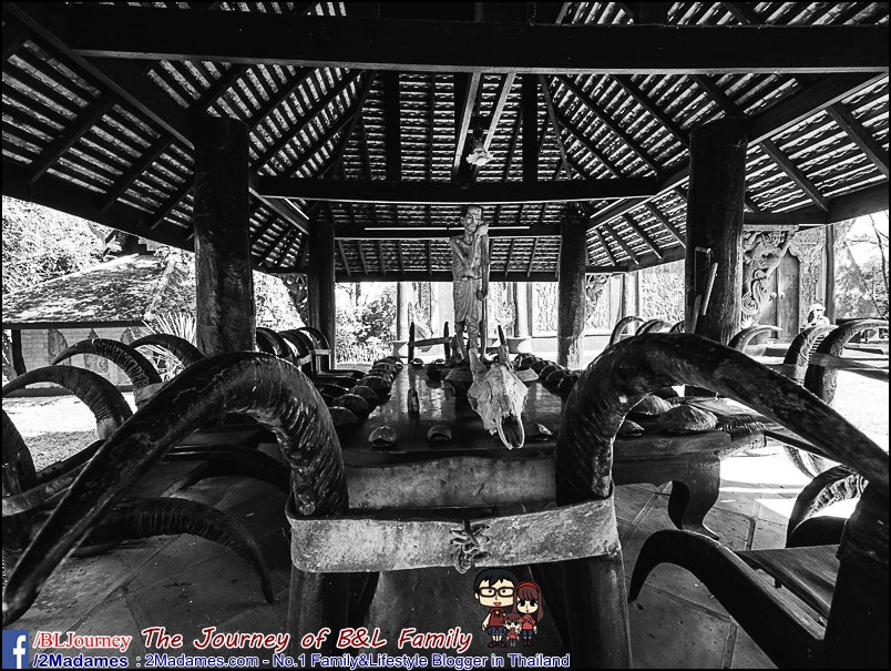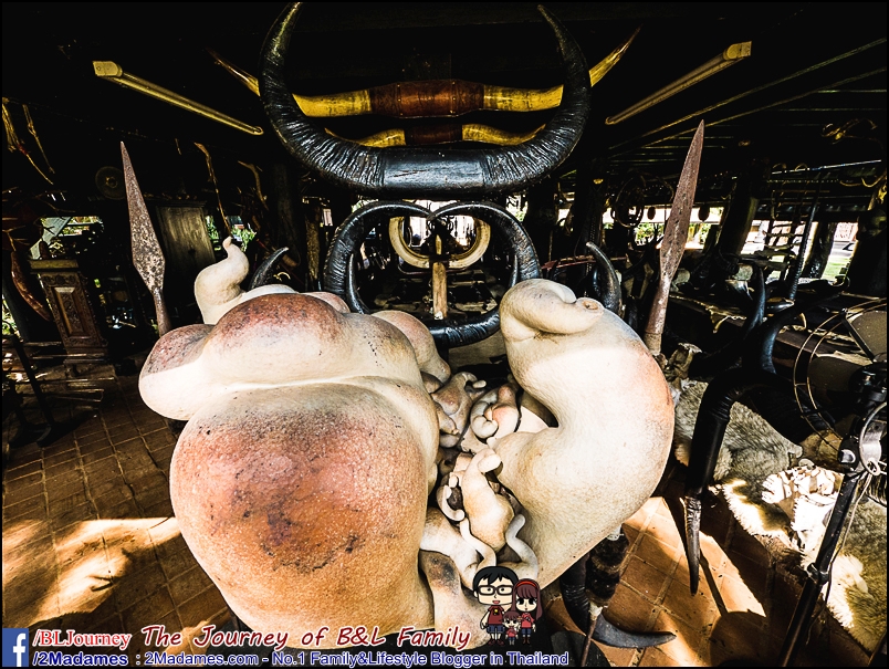 ความรู้สึกของที่นี่ เหมือนที่หลายๆคนบอกครับ ถ้าเปรียบวัดร่องขุ่นเป็นสวรรค์ ที่นี่คือตรงข้ามครับ ผมไม่ค่อยมีความรู้เรื่องศิลปะเท่าไหร่ แต่ก็สามารถสัมผัสถึงพลังอะไรบางอย่างที่ส่งออกมาจากผลงานศิลป์ของอาจารย์ได้ครับ เป็นความรู้สึกอัดแน่น บีบคั้น แบบบอกไม่ถูกครับ น่าจะด้วยเพราะโทนสีดำ และ โครงกระดูกสัตว์ต่างๆ ส่วนเบลล่าน่าจะสัมผัสได้เหมือนกัน ร้องไห้ไม่ยอมเข้าขอออกจากมหาวิหารหลังใหญ่ไปอยู่ด้านนอกแทน
