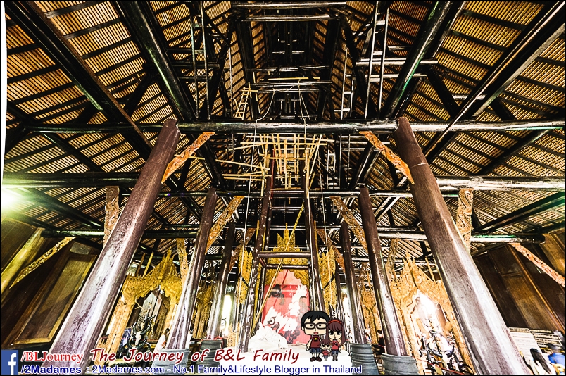 ภายในมหาวิหาร ที่ใช้เวลาในการสร้างนานกว่า 7 ปี ตามหลักแนวคิดร่วมสมัยพุทธศิลป์สถาปัตย์ในยุคปัจจุบัน อาคารรูปสี่เหลี่ยมผืนผ้าวางตามแนวทิศตะวันออก–ตก มีบันไดขึ้นลง มีเสาไม้รองรับโครงสร้างถึง 44 ต้น