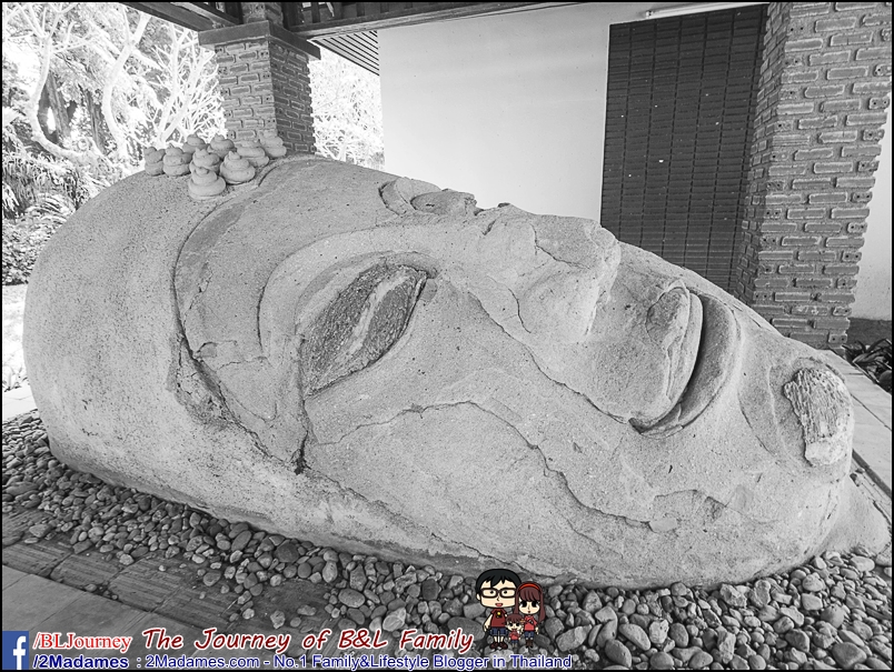 ด้านหน้าอาคารมีเศียรพระนอนจากวัดพระนอน เมืองเชียงแสนครับ
