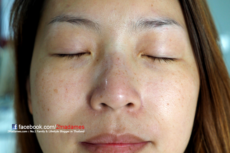 จะเห็นได้ว่า รอยกระจางลงเล็กน้อย แต่ที่รู้สึกได้คือ รูขุมขนเล็กลง และผิวนิ่มเนียนกระชับขึ้นแบบรู้สึกได้จริงๆ