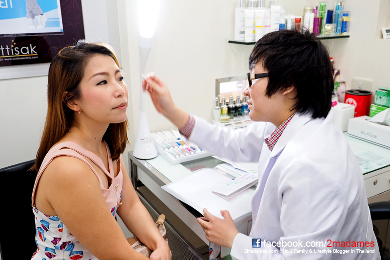 นั่งรอสักพักเดียวก็ได้คิวเข้าพบคุณหมอแล้วคะ เบื้องต้นคุณหมอจะวิเคราะห์ผิวเบื้องต้น ว่าผิวเราเป็นผิวธรรมดา ผิวมัน ผิวผสม หรือผิวแพ้ง่าย ผิวมีสิว มีริ้วรอยหรือเปล่า เราอยากทำอะไร มีความกังวลกับผิวหน้าตรงไหน ก็คุยกับคุณหมอได้เลย ขั้นตอนนี้คุณหมอจะจ่ายครีมบำรุง วิตามิน และตัวยาอื่นๆทั้งยาทาและยากิน ให้เหมากับการรักษาของแต่ละคนเลยจ้า