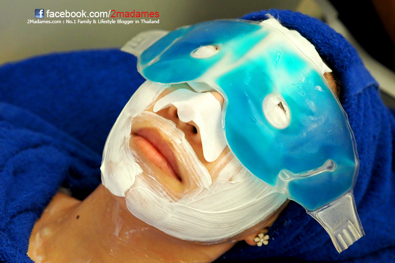 ก่อนที่จะเริ่มทำ ก็ต้องทำความสะอาดผิวหน้าและลำคอกันเสียก่อน เสร็จแล้วต่อด้วยการทาครีมบำรุง และมาส์กหน้าด้วย Oxy Gel Mask ที่ช่วยเพิ่มออกซิเจนเข้าสู่ผิวทำให้ผิวอ่อนเยาว์ สดใส เปล่งปลั่ง มีสปริง โดยจะเปลี่ยนเนื้อเจลเป็นฟองนุ่มๆ ทำหน้าที่พาสารอาหารต่างๆ เข้าสู่เซลล์ผิว และเพิ่มประสิทธิภาพการทำงานให้ผิวแข็งแรง ไร้ความหมองคล้ำ
