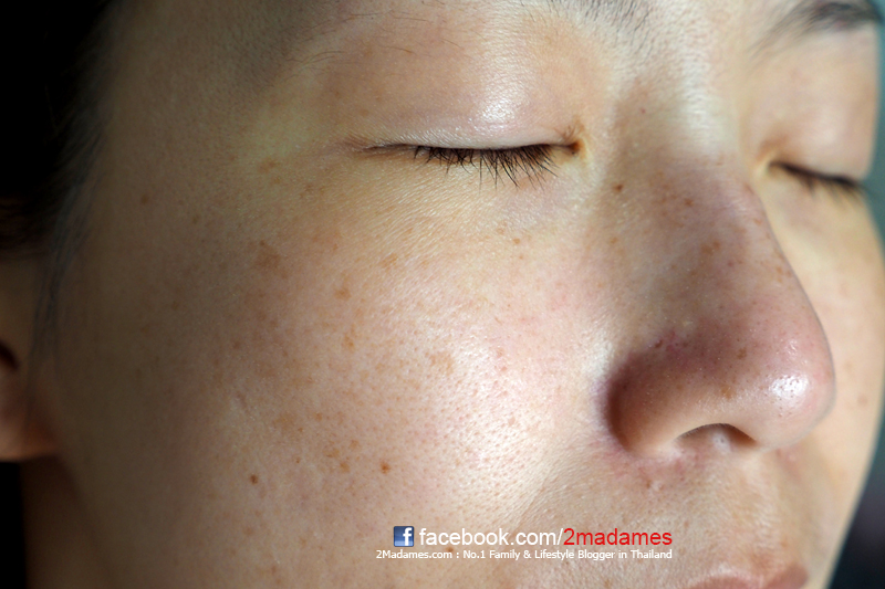 เอาล่ะคะเรามาดูผิวหน้าเปลือยๆ ไร้เมคอัพกันนะคะ เริ่มจากหน้าตรงก่อน จะเห็นว่ากระขึ้นเยอะมากช่วงใต้ตาจนถึงปลายจมูกเลย