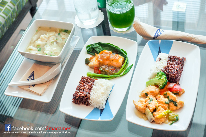 ความพิเศษของเลาจน์ระดับบลูริบบอน คือมีเสิร์ฟอาหารร้อนในเลาจน์ด้วย วันนี้สั่งมาชิม 3 อย่าง มีเกี๊ยวน้ำตัวใหญ่เต็มคำ ปลาดทอดซอสพริกไทยดำและไก่ผัดเม็ดมะม่วงทานกับข้าวหอมมะลิและข้าวไรซ์เบอร์รี่