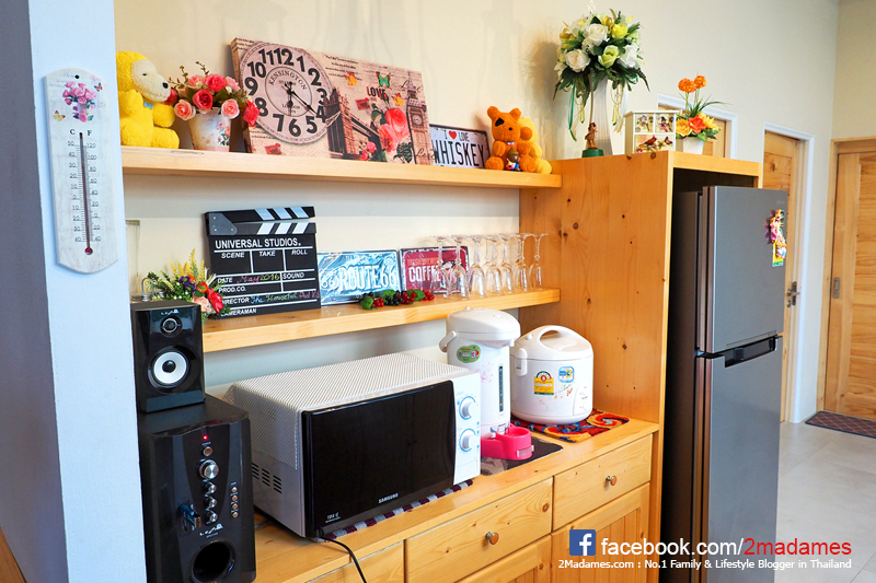 พร้อมไมโครเวฟ กาต้มน้ำ ตู้เย็นใหญ่ๆ มีหม้อหุงข้าวให้ด้วย
