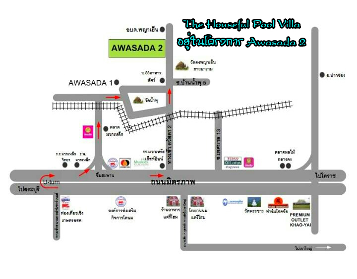 แผนที่การเดินทางมายังเดอะเฮ้าส์ฟูลพูลวิลล่า เขาใหญ่ The Houseful Pool Villa Khaoyai