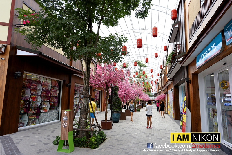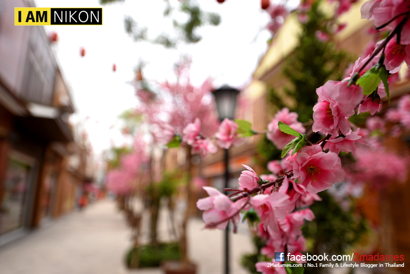 ซอยด้านหลังจะตกแต่งด้วยต้นซากุระจำลอง เรียงรายเป็นแนวยาว สวยงามชะมัด