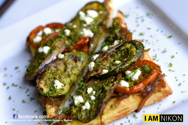 Ratatouille ซุคคินี่ มะเขือม่วง และมะเขือเทศ ย่างไฟอ่อนจนเนื้อนุ่ม ปรุงรสด้วยซอสเบซิล เพสโต้ ชีสเฟต้า และหัวหอมผัดซอสบัลซามิก